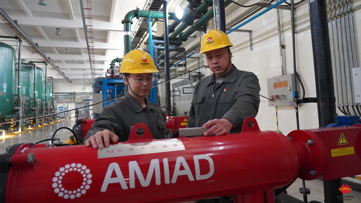 圖為該廠發(fā)電部人員正在對除鹽水預處理系統(tǒng)網(wǎng)式過濾器進行檢查。